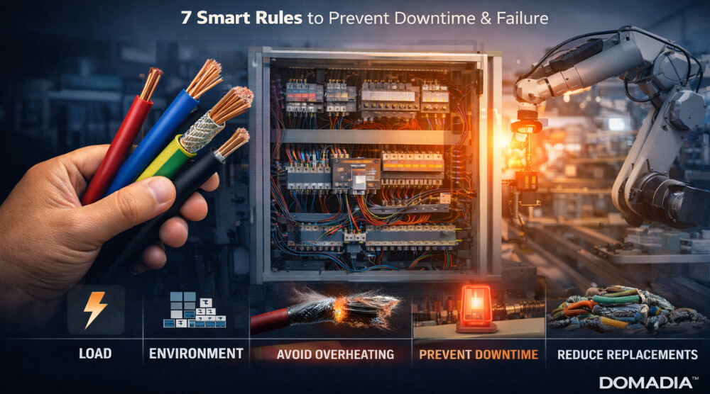 #IndustrialWireSelectionGuide #IndustrialWiring #ElectricalSafety #AutomationCables #DOMADIA #ManufacturingReliability