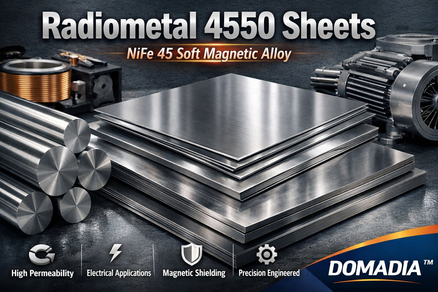 We supply high-quality Radiometal 4550 sheets, a precision nickel-iron soft magnetic alloy (~45% Ni) designed for applications requiring high magnetic permeability and high saturation flux density. This alloy is widely used in electronic, relay, and electromagnetic applications where sensitivity to weak magnetic fields is critical.